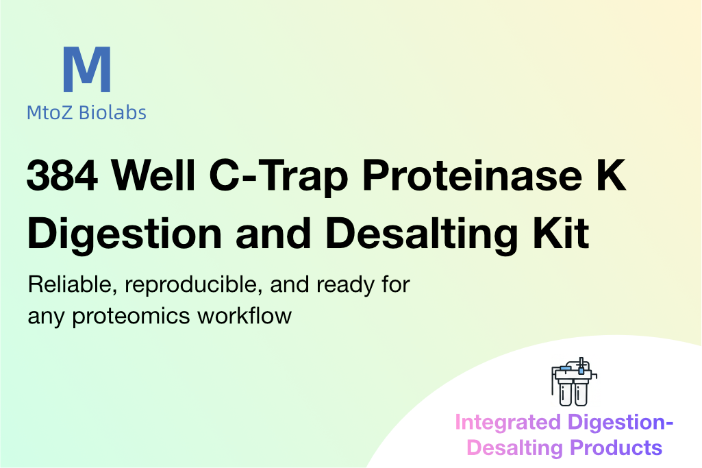 The 96-Well C-Trap Proteinase K Digestion and Desalting Kit from MtoZ Biolabs provides a high-throughput solution for protein digestion and desalting, ideal for medium-scale proteomics studies, delivering reproducible results for multiple samples with minimal handling.