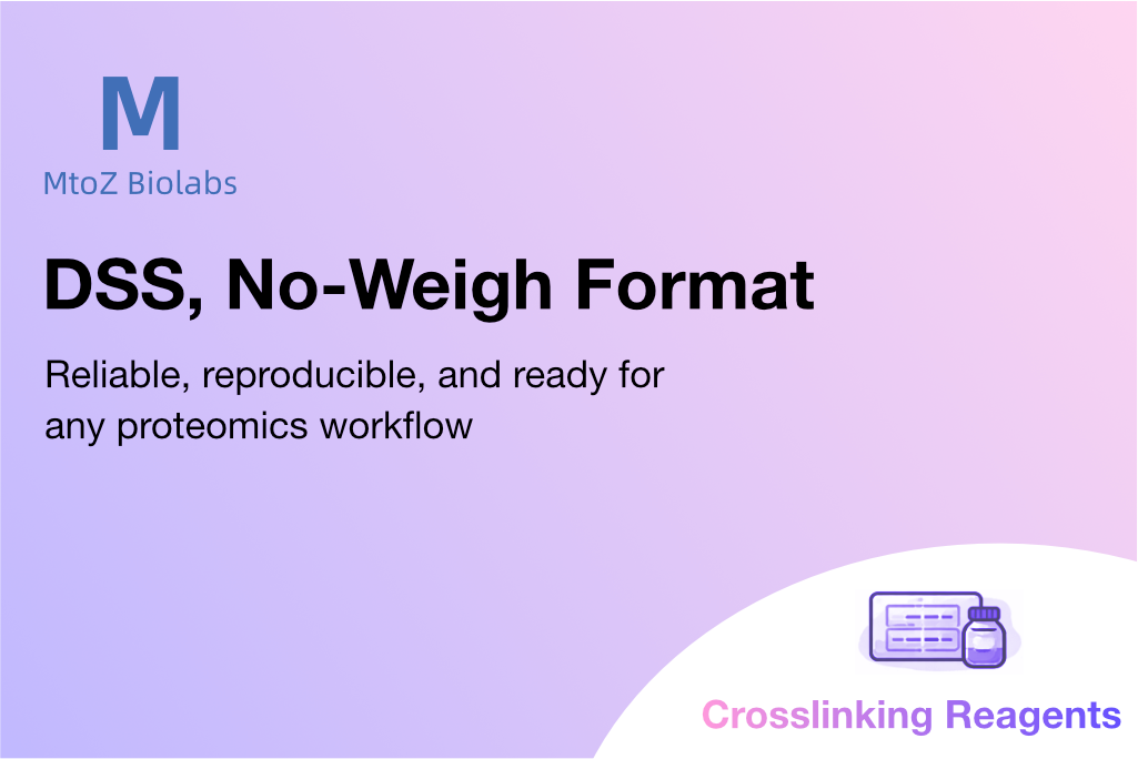MtoZ Biolabs offers DSS, No-Weigh Format in a pre-aliquoted, no-weigh format for single or multiple uses. This design eliminates weighing errors, reduces moisture sensitivity and handling risks, simplifies experimental workflows, and improves consistency and reproducibility across experiments.